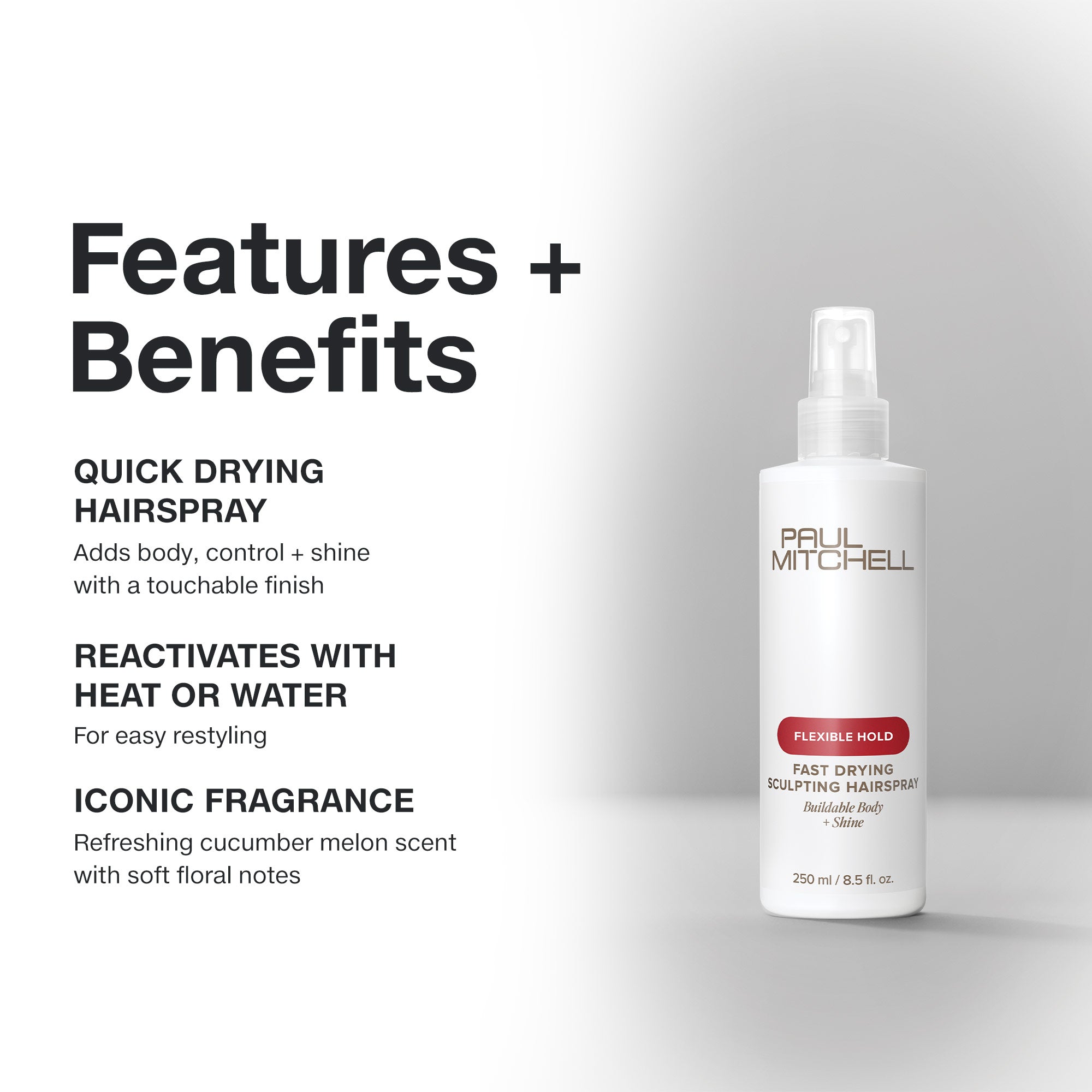 Paul Mitchell Fast Drying Sculpting Hairspray provides a reliable hold while keeping hair movement natural. Its fast-drying formula, with 50% volatile organic compounds, ensures styles set quickly without weighing hair down. Designed for use on all hair textures, this 1000ml hairspray supports sculpting and finishing with a smooth, non-sticky finish. Its expert formulation helps maintain style integrity throughout the day.