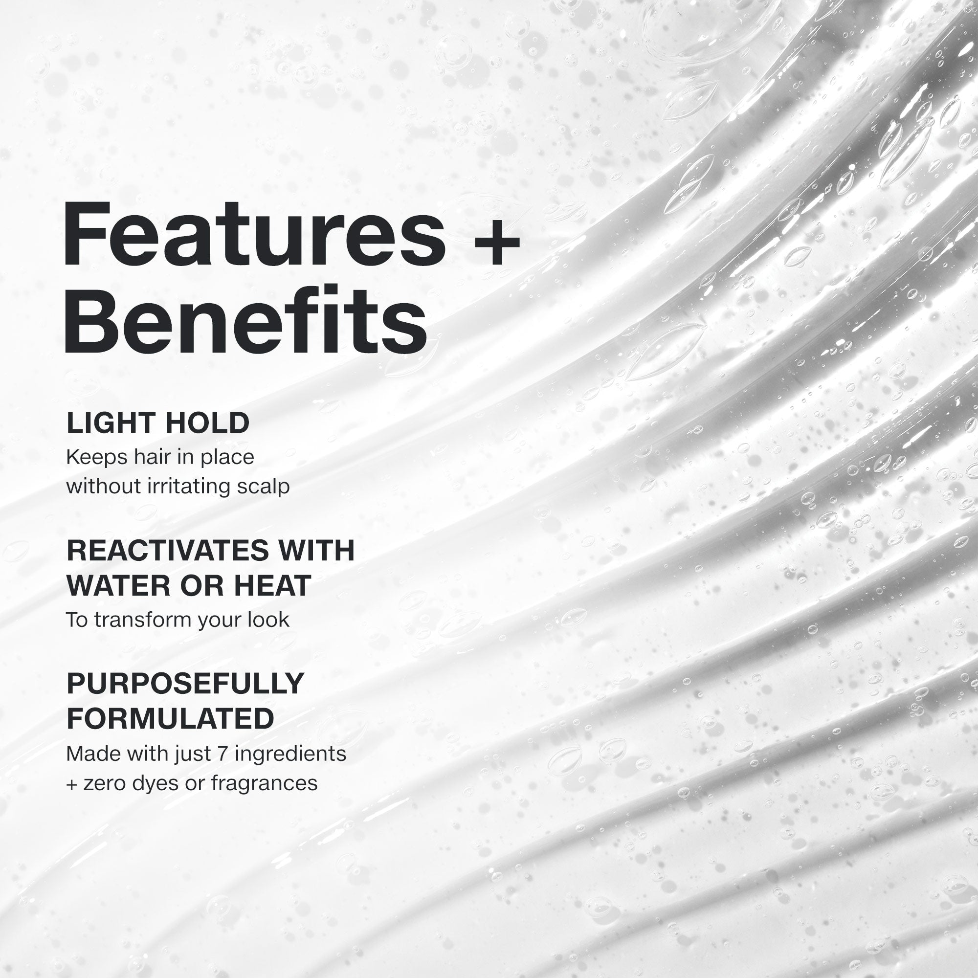 Styling glaze provides light hold and long-lasting style.